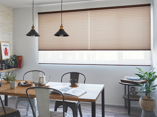 また、窓まわりには、厚手のドレープとレースの2種類の生地間に空気層をつくって断熱性を上げるプリーツスクリーン「ペルレ ダブル」を提案する。窓からの冷気の侵入を抑えるとともに、室内の暖かい空気を逃がしにくくする。
