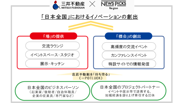 三井不動産(東京都中央区)は、地域経済メディア「NewsPicks Re:gion」とコラボレーションし、2023年3月にオープンする「東京ミッドタウン八重洲」にて、地域経済創発プロジェクト「POTLUCK YAESU」を始動すると発表した。