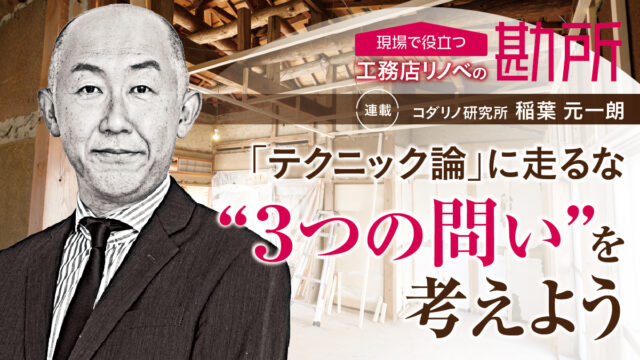 工務店の性能向上リノベーションの事業化を支援しているコダリノ研究所(神奈川県横浜市)代表の稲葉元一朗さんによる、DIGITAL連載「現場で役立つリノベの勘所」。第2回目は、マーケティング戦略のあり方について考えます。(新建ハウジングDIGITAL編集部)