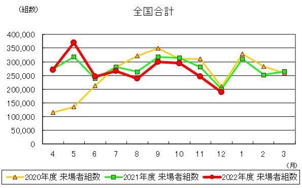 今期来場者累計は、242万647組となり、昨年累計比でマイナス2.69%の来場減。