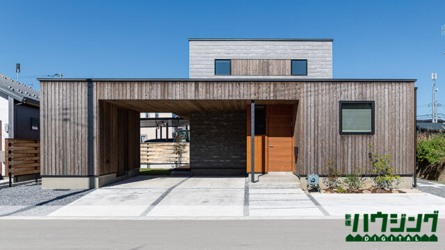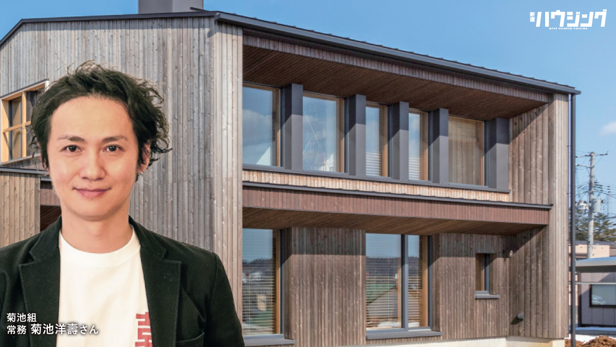 意匠と機能のせめぎ合う要素の1つがカーポートだ。車の出し入れを考えると敷地の前面に配置されるために非常に目立つ存在だ。母屋とカーポートを1つにまとめることで機能性と意匠性を両立できる。その設計手法について菊池組の菊池洋壽氏と菊池真壽氏に話を聞いた