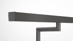 これまで大型建築に適したサイズのガルバリウム製雨といは市場に出回っていなかったため、業界で初めて商品化。できるだけ存在を主張しないシームレスなデザインにこだわり、板を丸めてパイプ形状にするハゼ構造を、通常とは異なり内側にハゼが現れる「内ハゼ構造」とし、縦樋を留める支持金具も強度を確保しながら薄くて目立ちにくいデザインとした。