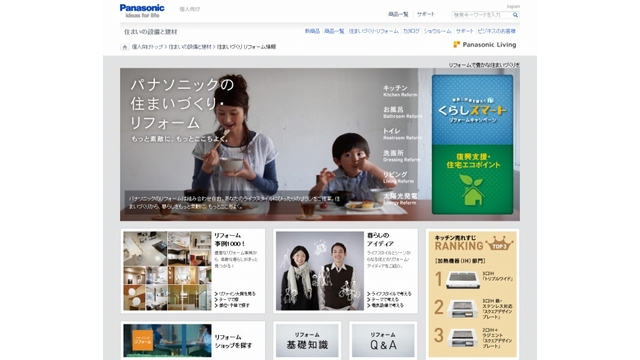 パナソニック(大阪府門真市)は10月5日、同社の個人向け「住まいの設備と建材」サイトを全面的にリニューアルした。視覚的に憧れの生活シーンをイメージしやすくしたほか、新築・リフォームの検討ユーザー向けのコンテンツの充実も図った。
