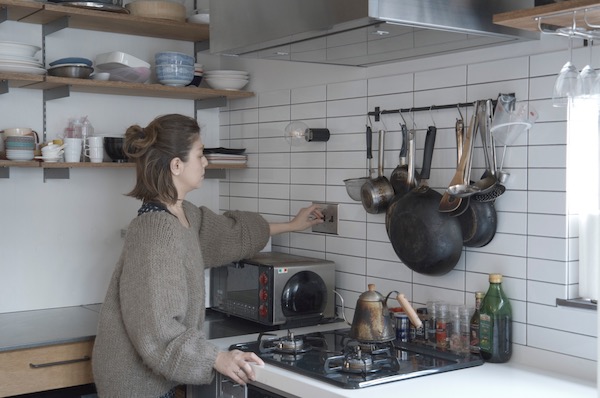 高い位置にレンジフードが取り付けられるようスイッチは本体から切り離し、手元の好きな位置に設置できる。電気工事は、電源のオン・オフとファンの強・弱の操作用に2系統のスイッチがと必要なる。