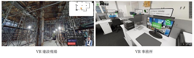 コロナ禍を機に学生の就活スタイルが変化し、建設現場を訪れる機会が減少するなか、同社では若手社員が建設業の魅力を伝えるため学生向けのVR活用ツールを企画。CG・VR等のデザインサポート、メタバース制作サービスを提供するSTUDIO55(東京都港区)支援のもと、VR建設現場・VR事務所をそれぞれ異なるソフトウェアを活用して制作した。