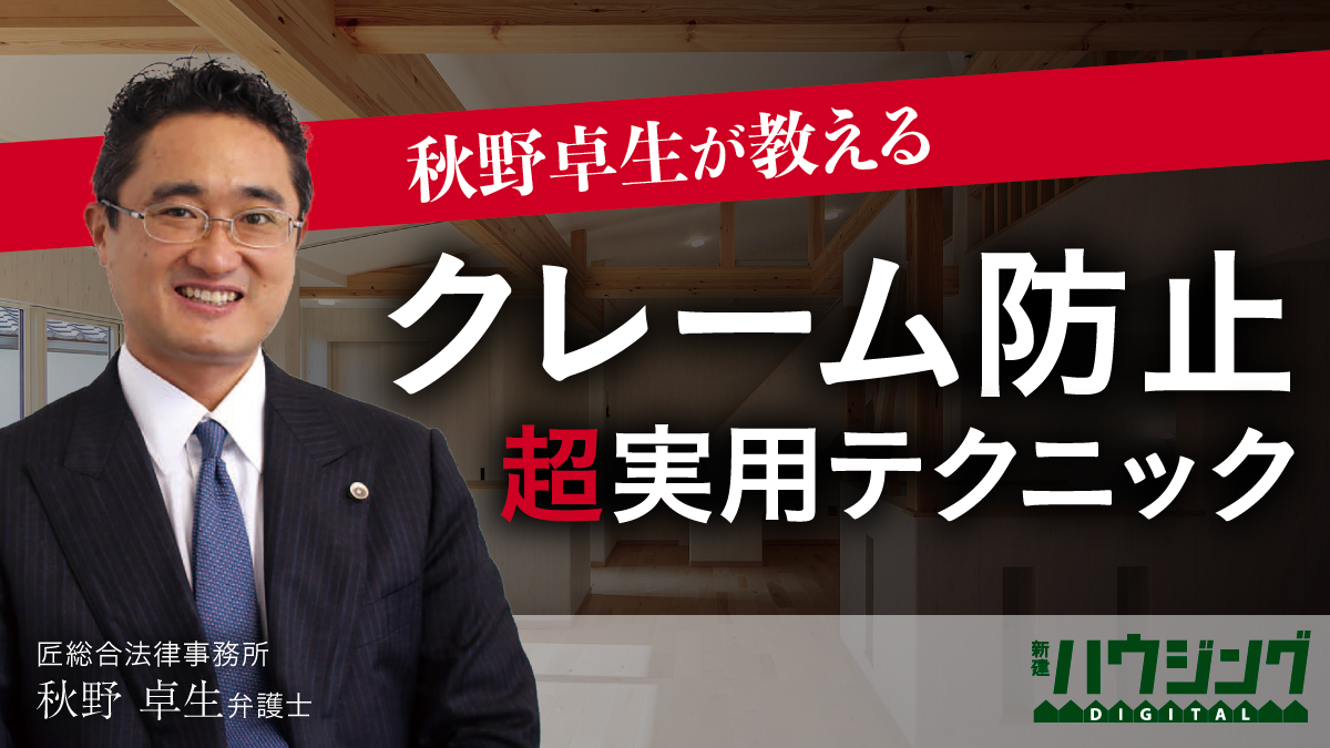 匠総合法律事務所(東京都千代田区)代表社員弁護士の秋野卓生氏が、電子契約や重要事項説明など、従来の業法解説書にはなかった建設DXの最優先課題を取り上げて、実務経験や業界から寄せられる法律相談を踏まえて執筆。