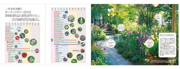 第1章ではシーズンごとの庭景色と演出方法、第2章では植物選びの基礎知識と庭づくりに活躍する草花137種類、第3章では毎月の庭仕事をリストアップしている。