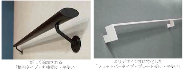 また「補助手すり 平使い」のバリエーションに「楕円タイプ・丸棒受け・平使い」をラインアップ。10色。3万9000円/スパン。