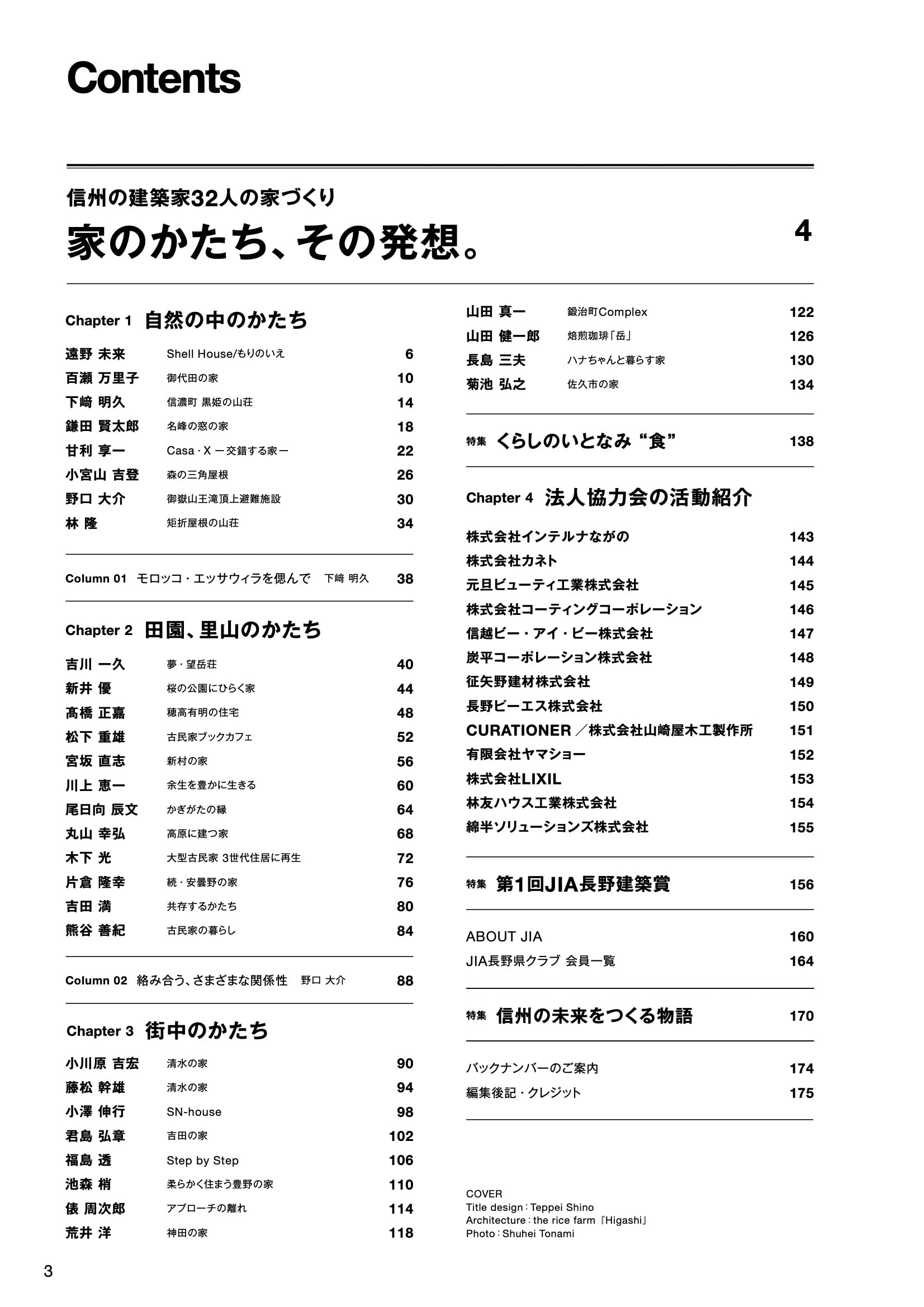 信州・長野県で活躍する32人の建築家が魅せる家づくり、そして建て主と建築家による家づくりのストーリーも紹介。