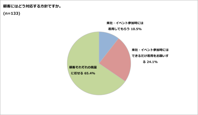 また、41.4%が「社内は自由とし、顧客対応やイベント時、外出の際などは着用を呼び掛ける」と回答。「社内でも引き続きマスク着用を呼び掛ける」とした会社は15.0%にとどまった。