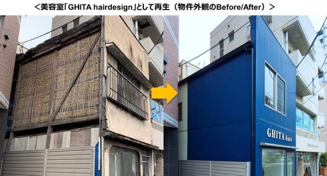 ジェクトワン(東京都渋谷区)は、約20年間放置され、管理不全状態にある「特定空家等」に認定される恐れのあった品川区南大井の空き家物件を、空き家活用サービス「アキサポ」によって再生し3月11日、美容室「GHITA hairdesign」として新たにオープンする。