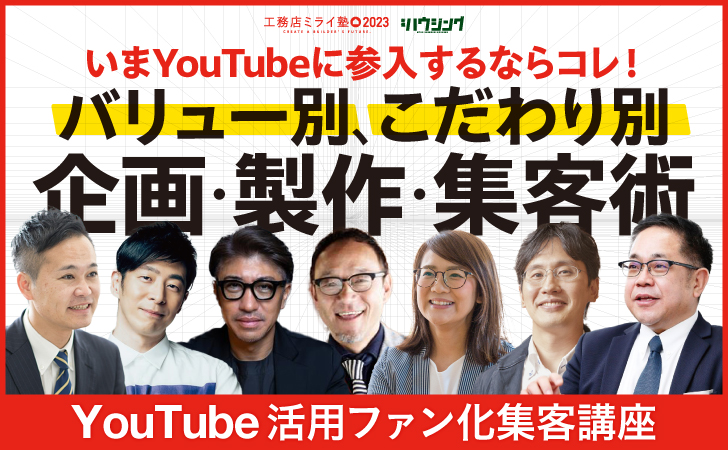 これからYouTubeを始める方はもちろん、自社の家づくりや強みを動画でより効果的に伝えたいと考えている方はぜひご参加ください。