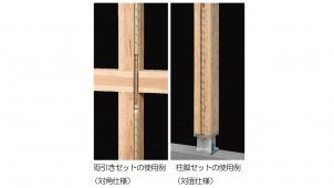 羽子板ボルトのかんざしや、 ホールダウン金物用のボルトとして使用する。ボルトと座金をセットする手間が省ける。座金とボルトは一体成型で、頭部とボルト付け根で破断しない。