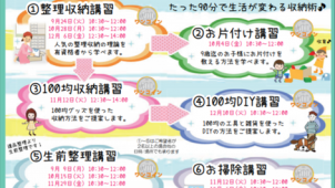 内 容 幸せ住空間セラピスト古堅純子さんによる整理収納とお掃除の具体的なノウハウを解説するセミナー。新年を快適に、幸せに過ごすための整理収納術を伝授。また、日々のちょっとしたお掃除の工夫で年末の大掃除が不要になる古堅式お掃除術も紹介。