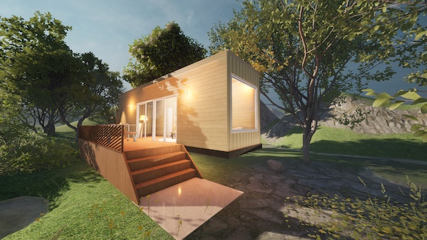 また、サンデッキに出られる大きなテラス窓(W3510×H2230mm)、FIX窓(W2000×H1800mm)により外とのつながりを強調。別荘やファミリータイプの宿泊施設、店舗などとして幅広く利用できるとする。