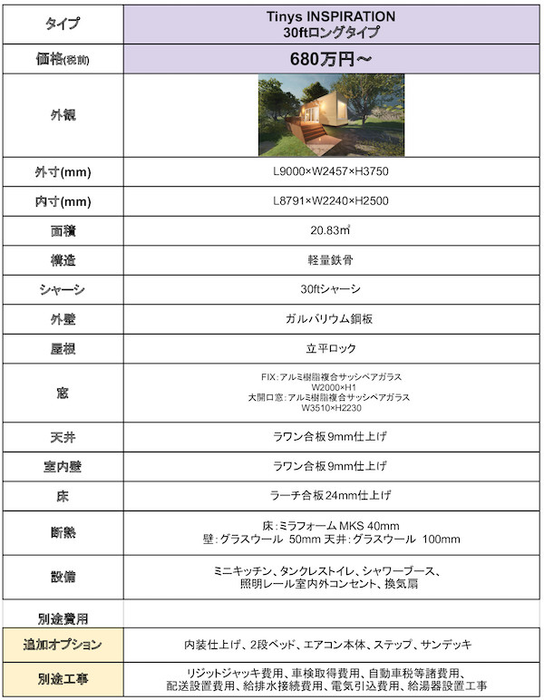 「Tinys INSPIRATION」 30ftロングタイプ