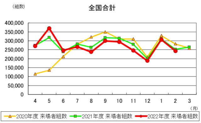今期の来場者累計は、昨年累計比2.62%減の297万336組。先月よりも減少幅が拡大した。