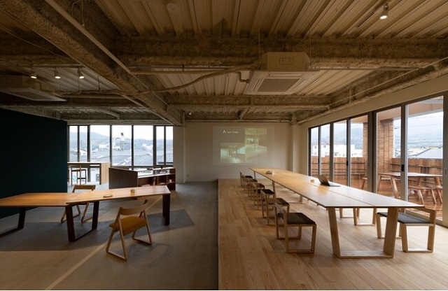 オフィスエリアでは、デスクを限定しないフリーアドレス化で仕事の効率化と時間の有効活用、ペーパーレス化を目指す。家と同じような空間で家具とともに「暮らしながら働く」ことで、オフィスと住空間のバリアフリーを実現した。府中家具の歴史と古家具や古道具を紹介するミュージアムエリアでは、定期的に企画展を開催する。