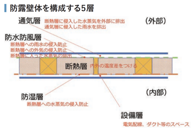 木造住宅における内部結露防止には、切れ目のない防風防水層と断熱層、防湿層、設備層からなる防露壁体が必須だ。これをつくり上げるのは簡単ではない。部材や部位、設備などとの取り合いが多数生じるため、断熱気密の切れ目となる熱橋や細かい隙間があらゆるところに発生する。それぞれの層を連結させる施工方法は確立されている。ただし、温暖地では職人に浸透していない。工務店の意識が低く、施工管理が機能していないと、隙間を補修せずに工事を進める現場もある。放置された熱橋や隙間が壁内や小屋裏、床下などで結露を引き起こす。このほか24時間換気や冷暖房の計画・設計と施工に不備があり、結露を引き起こしている事例も少なくない。設備に関しても・・・