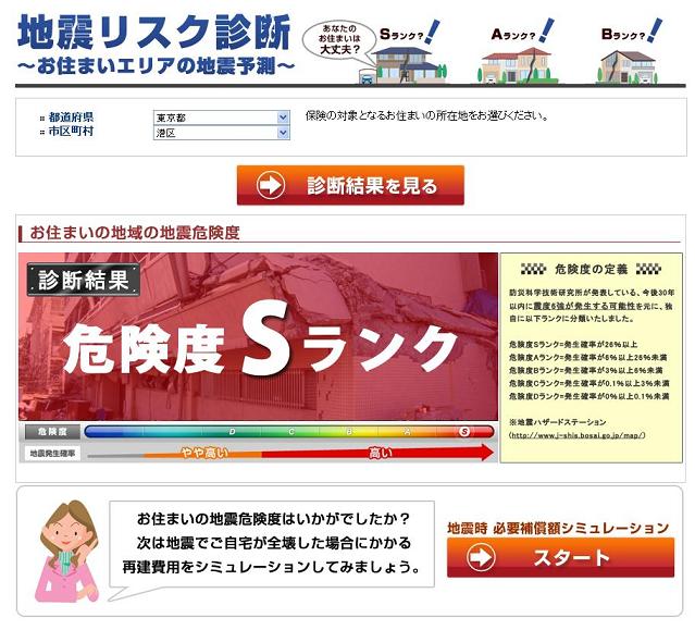 SBI少額短期保険(東京都港区)は10月24日、同社ウェブサイト上で、地震の危険度判定ができる「地震リスク診断サービス」と、地震で被災した際に生活再建や自宅再建でどの程度の費用負担が必要になるかをシミュレーションする「地震被災時自宅再建シミュレーションサービス」の提供を始めた。