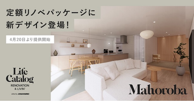 ツクルバ(東京都目黒区)が運営する中古・リノベーション住宅の流通プラットフォーム「cowcamo(カウカモ)」は4月20日、オリジナルの定額リノベパッケージ「LifeCatalog – renovation&livin’(ライフカタログ リノベーション&リビン)」に、新デザイン「Mahoroba(マホロバ)」を追加し提供を開始すると発表した。これによりライフカタログの内装デザインは全7種類となる。