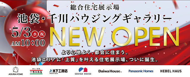ライダース・パブリシティ(東京都千代田区)は、「総合住宅展示場 池袋・千川ハウジングギャラリー」(東京都板橋区)を5月3日にオープンする。出展メーカーは、AQURA HOME、一条工務店、木下工務店、積水ハウス、大和ハウス工業、パナソニック ホームズ、HEBEL HAUS(50音順)。