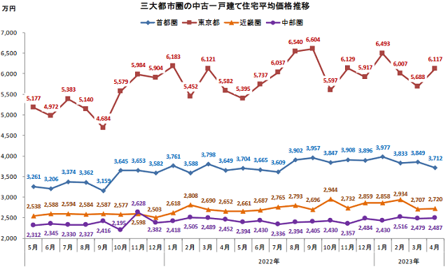 東京カンテイ(東京都品川区)はこのほど、4月の主要都市における中古木造一戸建ての供給動向を発表した。首都圏は反転下落、近畿圏・中部圏は反転上昇した。