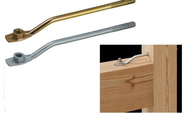 新製品は、小屋梁と軒桁、胴差しと床梁、通し柱と胴差しの接合に使う羽子板ボルト。羽根部がコンパクトなため、4寸幅の木材で、座掘りなしでもナットを十分に締めることができる。ブロイズとクロメートメッキの2タイプ。50本/ケース。税別170〜200円。