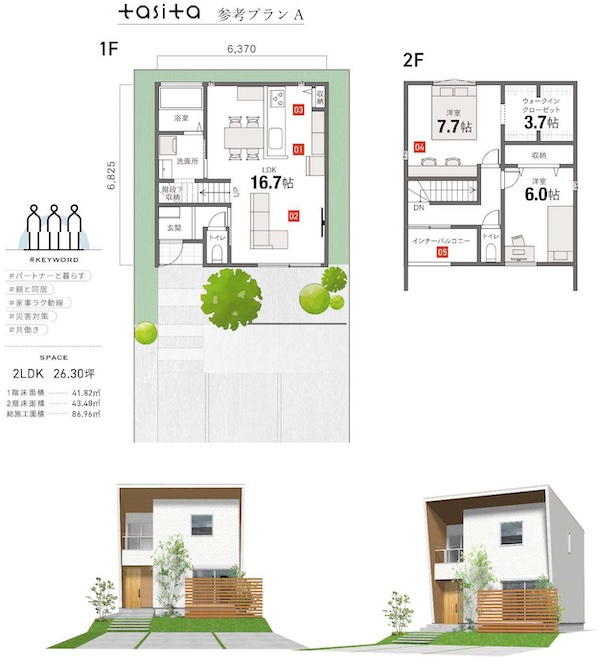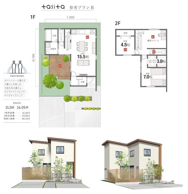 泉北ホーム(大阪府堺市)は、注文住宅の新シリーズ「アシタノ」第1弾商品として、26坪・2階建て・2LDK・税込1555万円〜の2×4住宅「tasita(タシタ)」を5月13日に発売した。販売エリアは関西。