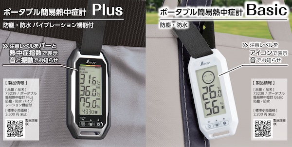 シンワ測定(新潟県燕市)は、身につけて熱中症の危険を確認できる「ポータブル簡易熱中症計Plus/Basic」を発売した。
