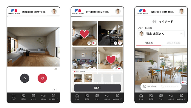 今回新たに、顧客が選んだ画像やコメント情報を登録でき、打ち合わせ初期から引き渡しまでを見える化したインテリアコミュニケーションツールも開発。好みの画像や好きな理由を整理でき、こだわりなどニーズが把握しやすくなるため、顧客の感性を共有し的確な提案を行うことが可能となる。顧客一人ひとりの感性に響く提案を強化することで、長く愛着が持てるインテリアを提供するとしている。