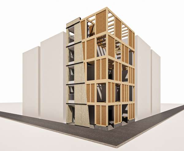 木材利用促進の観点から今年4月に建築基準法が改正され、木造5階に求められる耐火性能基準が従来の120分から90分へと緩和されたこともあり、今回の5階建て対応仕様でこれまで住宅をメインに手がけてきた工務店や地方ゼネコンなどが中高層木造建築事業に参入するサポート体制を強化するとともに、4階建ての設計自由度と商品力をさらに向上していくとする。