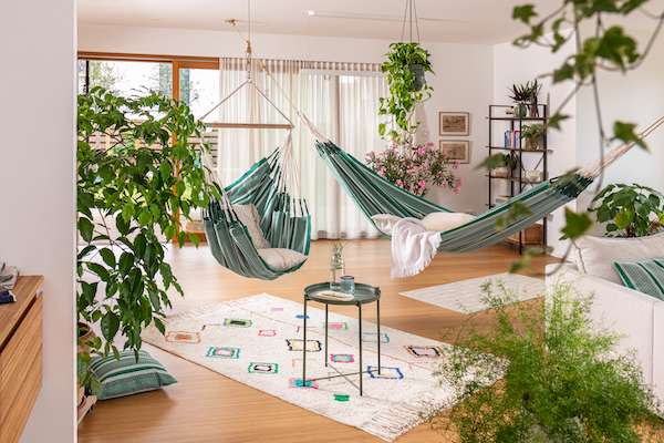GOTS認証のオーガニック繊維と森林管理協議会認証のエコロジカルな木材を使い、フェアな労働条件下でコロンビアの職人が製作し、世界50カ国以上で愛用されているというハンモック。