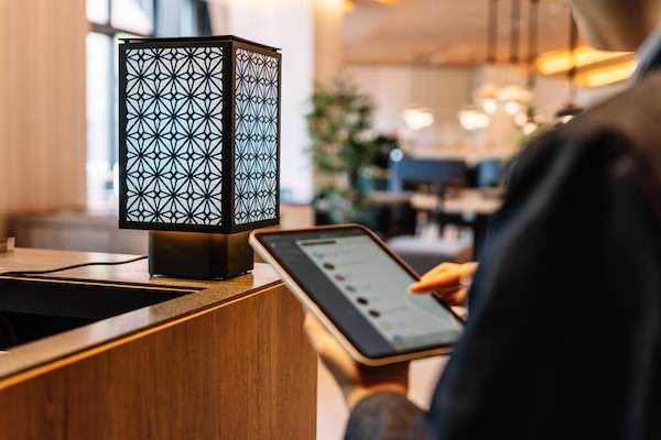パナソニック エレクトリックワークス社(大阪府門真市)は、ランプシェードに映像を流すことで自由なデザインを映し出す照明「LANTERNA(ランターナ)」の受注を7月から開始する。