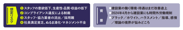 働く環境や給与などの待遇、マネジメント不全などが引き起こす「ブラック化」は、スタッフの意欲を削ぎ、生産性を押し下げ、収益悪化やトラブルの要因となり、スタッフの流出にもつながる重要なリスクだ。コンプライアンス違反は代償も大きい。