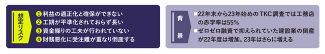 原価上昇と注文住宅不況による受注難から、特に注文住宅中心の工務店で売上げ・利益の低下などの財務状況の悪化が見られる。