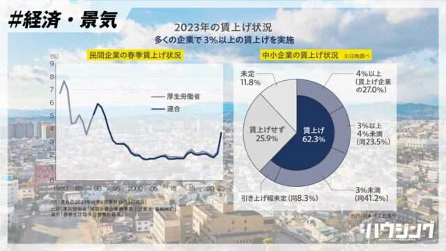 景気を左右する一因が収入と物価だ。これまではインフレで光熱費をはじめ物価が高騰したにも関わらずそれをカバーできるほど賃上げが進んでいなかったため=実質賃金が低下していたため、マス層は生活必需品を中心に支出を削減、企業の収益にも影響してきた。ちなみに実質賃金はこの3月まで12カ月連続低下、2022年度は前年度比-1.8%だった。