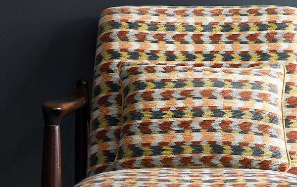 ファブリックは、鳥の羽根のような葉の植物、宝石のような丸い葉の植物などを刺繍で表現した「RIVERA(リベラ」9デザイン40 点、抽象的な民族柄の「GUSTAV(グスタフ)」8デザイン50点。
