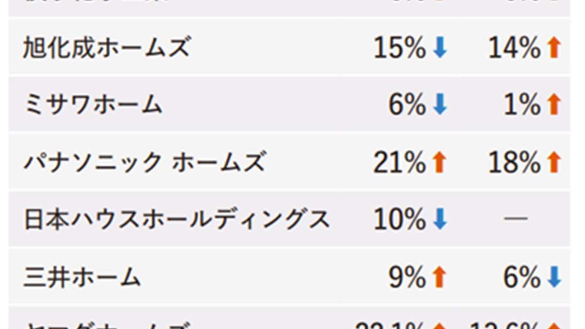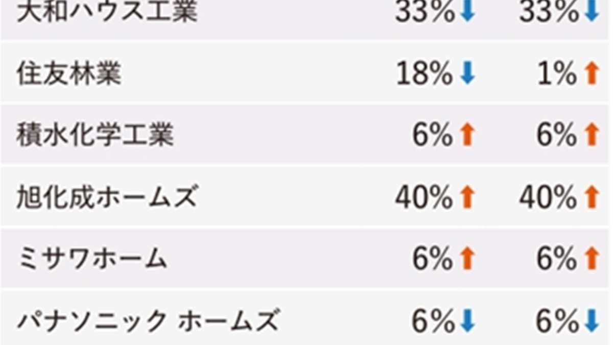 ハウスメーカー各社が7月20日までに発表した6月の戸建て注文住宅の受注速報値(対前年同月比、旭化成ホームズは集合も含む)は、12社中4社が増加し、うち3社は2ケタ増となった。旭化成ホームズは11%増、ミサワホームは14%増となり、5カ月ぶりの増加。ヤマダホームズは10.3%増となり3カ月ぶりの増加となった。一方で、マイナスとなった7社のうち5社が2ケタ減となり、低調が続く。