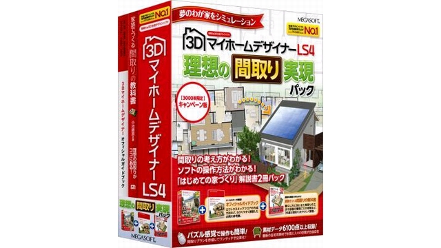 メガソフト(大阪府吹田市)は、施主向けの住宅デザインソフト「3DマイホームデザイナーLS4」に、家づくりの参考書をセットした特別パッケージを3000本限定で11月30日から発売する。標準価格は1万5225円。