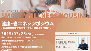 当日は、今村聡・医療法人社団聡伸会院長、伊香賀俊治・慶応義塾大学理工学部教授による、医療、住環境それぞれの視点からの講演、および立谷秀清・相馬市長、厚生労働省、国土交通省、環境省、盛静男・日本住宅リフォーム産業協会会長らによるパネルディスカッションを行う。