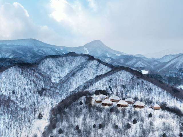 初の温泉ヴィラ7棟は、絶景が広がるみなかみの山頂にオープン。屋外含む総面積約250㎡。伝統的な山小屋を再解釈した特徴的な外観で、外壁には風合いが豊かな銅板一文字葺を使用している。専用駐車場を備えた1階部分と露天風呂やリビングを備えた2階部分で構成され、2つのベッドルームやシャワールーム、露天風呂、サウナ室などを備えている。リビングを囲むように15mのインフィニティプール(温水プール)と温泉を配置し、プライベートな空間で眺望を楽しむことができる。それぞれ最大6名が滞在可能。敷地面積は9854.26㎡。