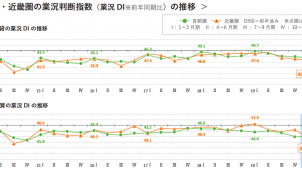 先行き見通しDIについては、「夏休み需要の本格化を控え、個人消費やインバウンド需要のさらなる拡大への期待感が伺える」とする一方、需要増に対する人手不足や、物価高による日用品等の買い控え、エネルギー価格の上昇傾向、海外経済の鈍化による外需の停滞などから、「慎重な見方が続いている」として▲12.5(今月比▲2.7ポイント)とした。