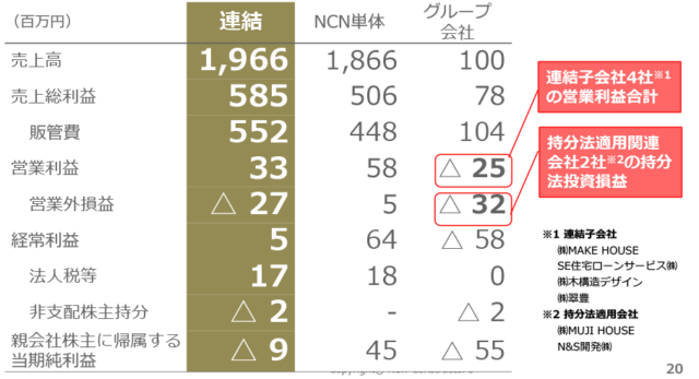 田鎖郁男社長は今回の業績について、説明動画の中で「昨年買収した翠豊(岐阜県加茂郡)をはじめとした連結子会社が、この3カ月間で売上を伸ばせなかったことが要因」と説明。営業外損失は「MUJI HOUSE」の株式評価損を計上したものだとした。