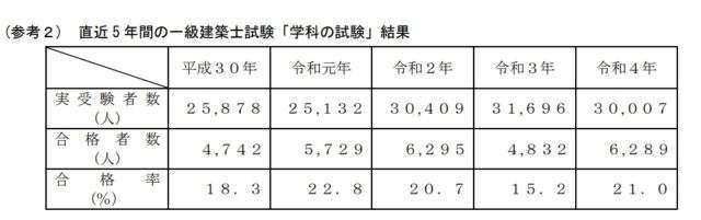 国土交通省は8月30日、7月23日に実施した一級建築士試験「学科の試験」の合格者を決定した。受験者数2万8118人に対し、合格者は4562人。合格率は16.2%だった。合格率は前年(21.0%)よりも4.8ポイント下がった。