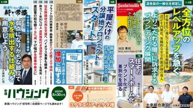新建ハウジング最新8月30日号のトップ記事は、「高性能の一般化を想定し全方位のレベルアップ急ぐ」を特集。自然素材を活用したデザイン性の高い家づくりを実践する大幸綜合建設(大阪府東大阪市)を取り上げました。