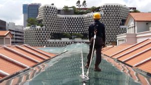 G-Place(京都府長岡京市)は、常設型の転落防止システム「アクロバット」から、垂直型ワイヤータイプの専用金具をリニューアルして「サムズアップスライダー」として発売した。