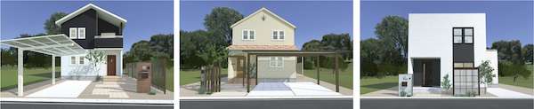 あらかじめ住宅に外構がセットされたサンプルプランも多数収録しており、色やサイズの変更も容易。登録アイテム、サンプルプランは随時アップデートする。
