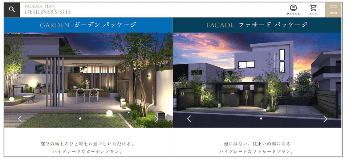 メタバース上で6種類の住宅スタイルから1つを選び、3Dの外構アイテムをマウス操作で配置していくだけで外構設計が行えるDXツール。