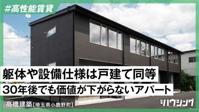 収益性優先になりがちな賃貸アパートだが、このほど、パッシブハウス仕様(認定申請中)のアパートが埼玉県秩父市内に完成した。設計・施工はパッシブハウスの認定実績を多数持つ髙橋建築(埼玉県小鹿野町)。高性能な戸建て住宅並みの快適性と省エネ性を実現し、社長の髙橋慎吾さんは「オーナーに損をさせないよう20~30年後も入居者が絶えない賃貸住宅を目指した」と話す。